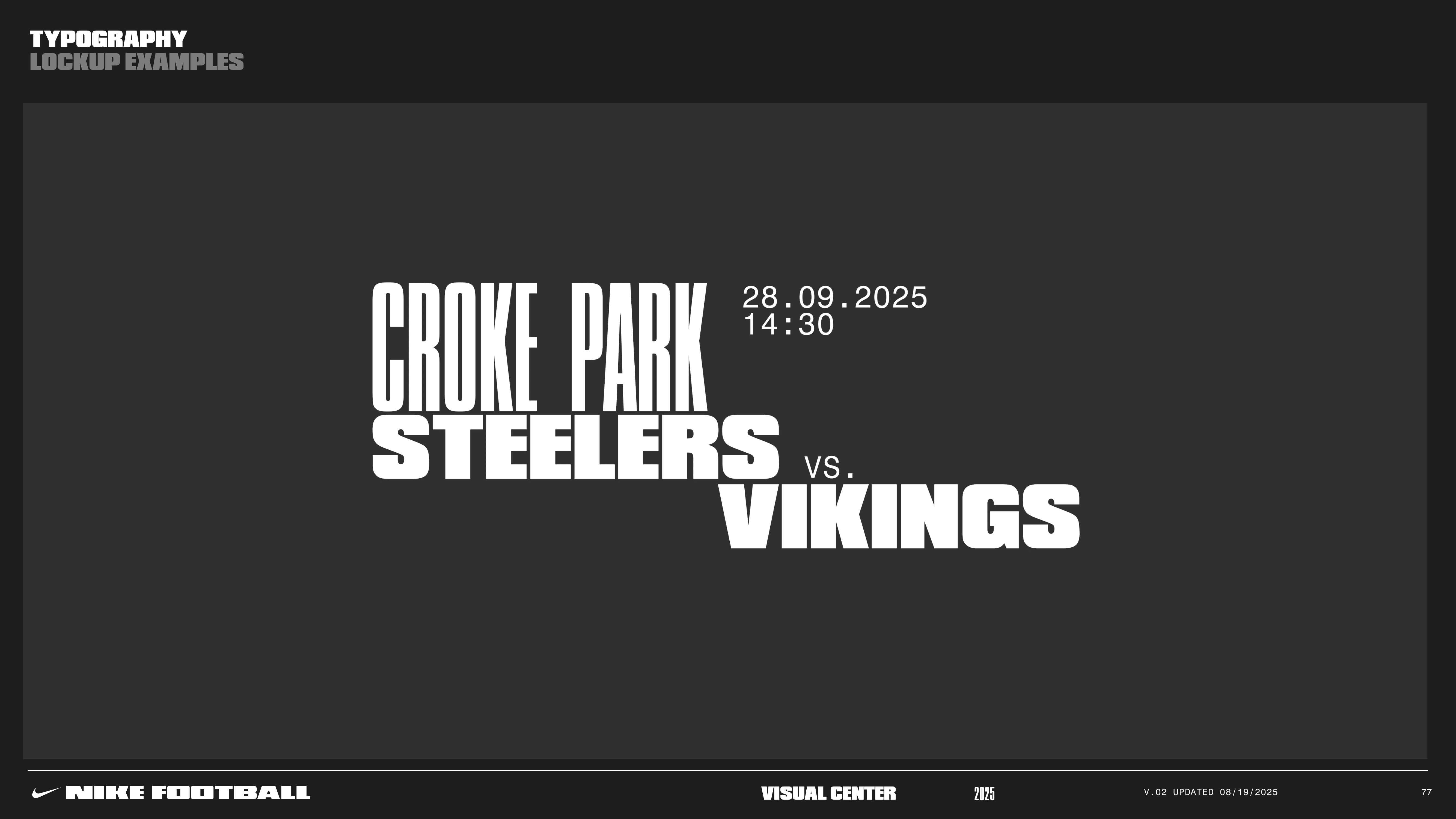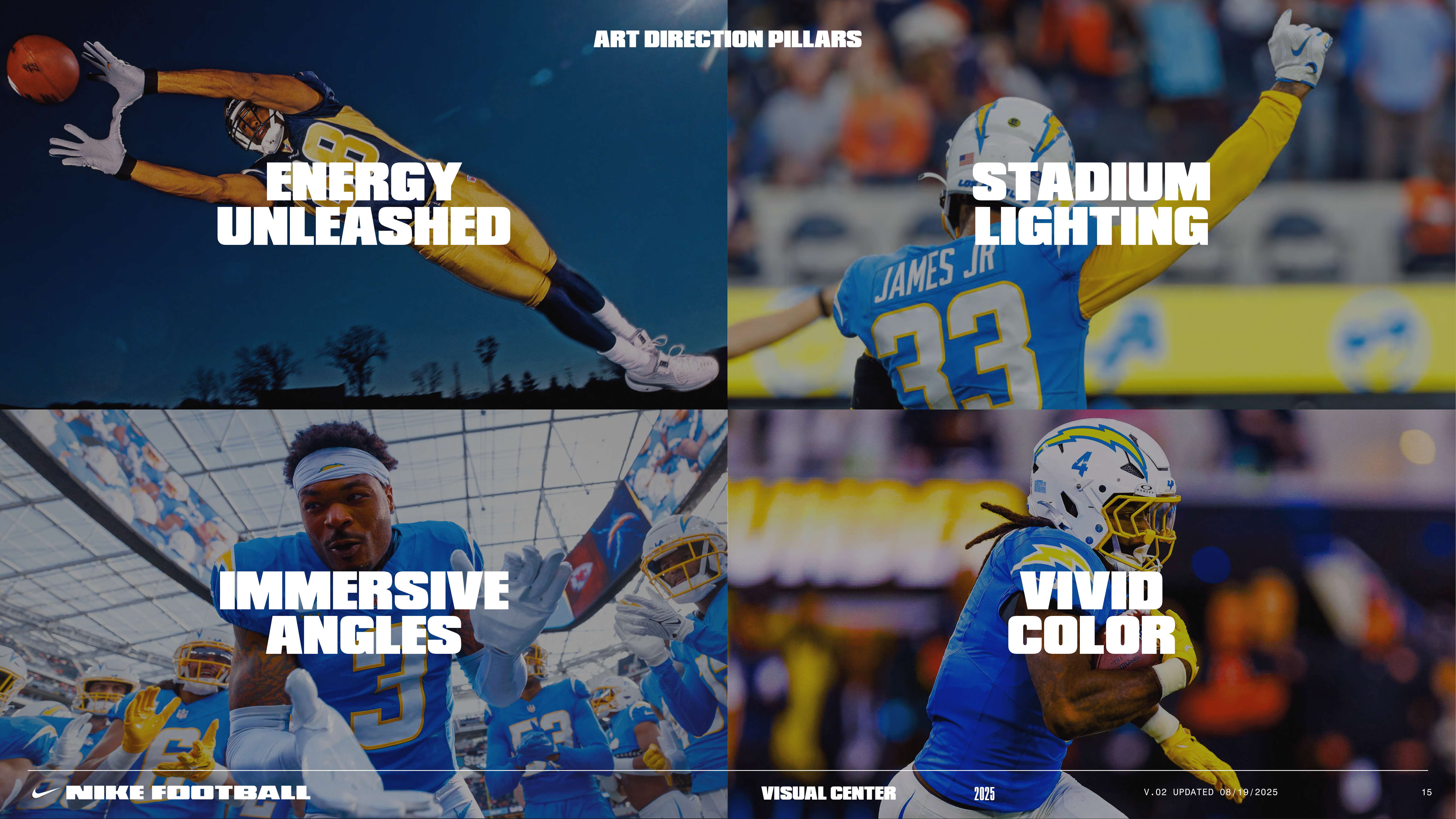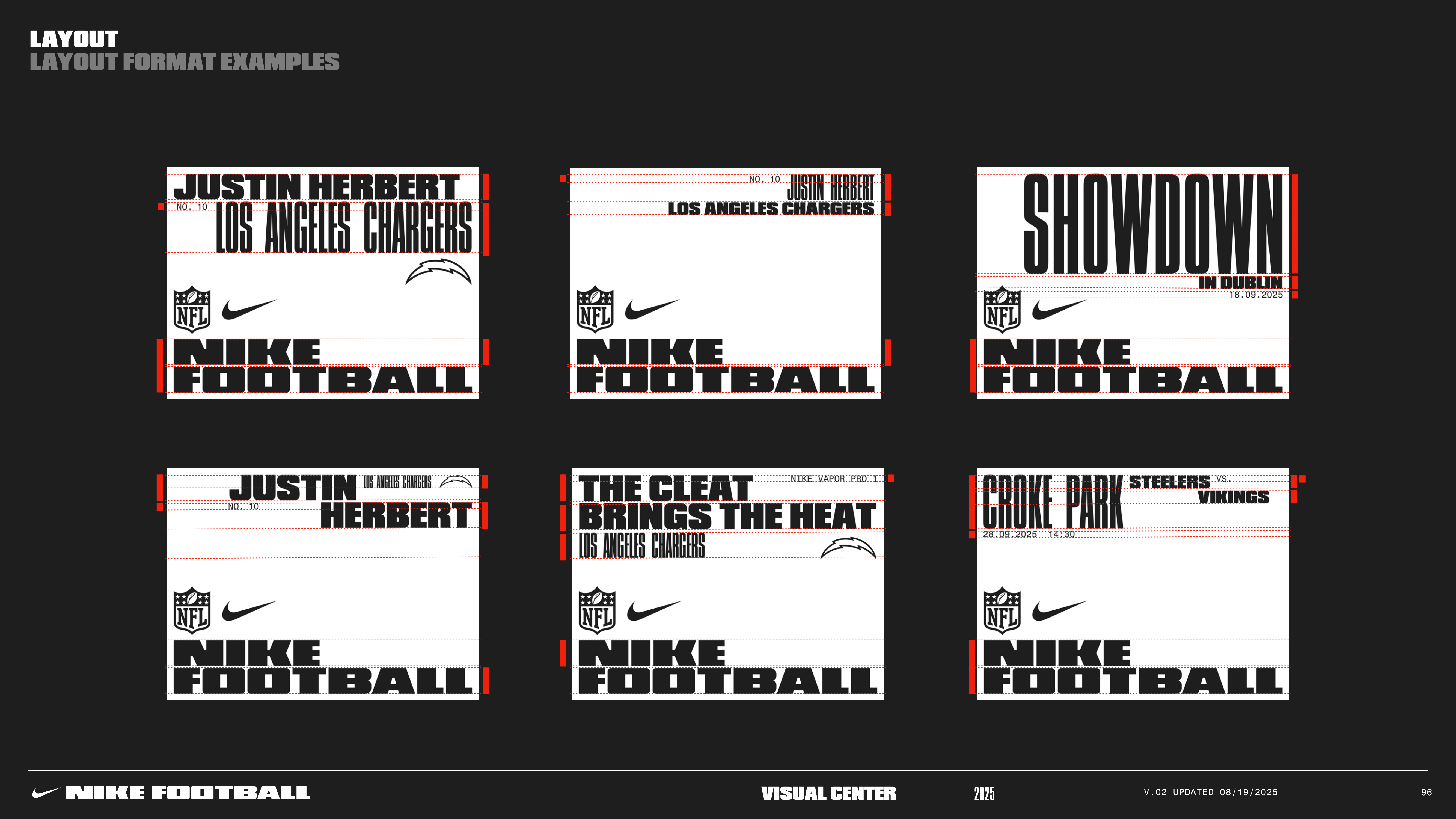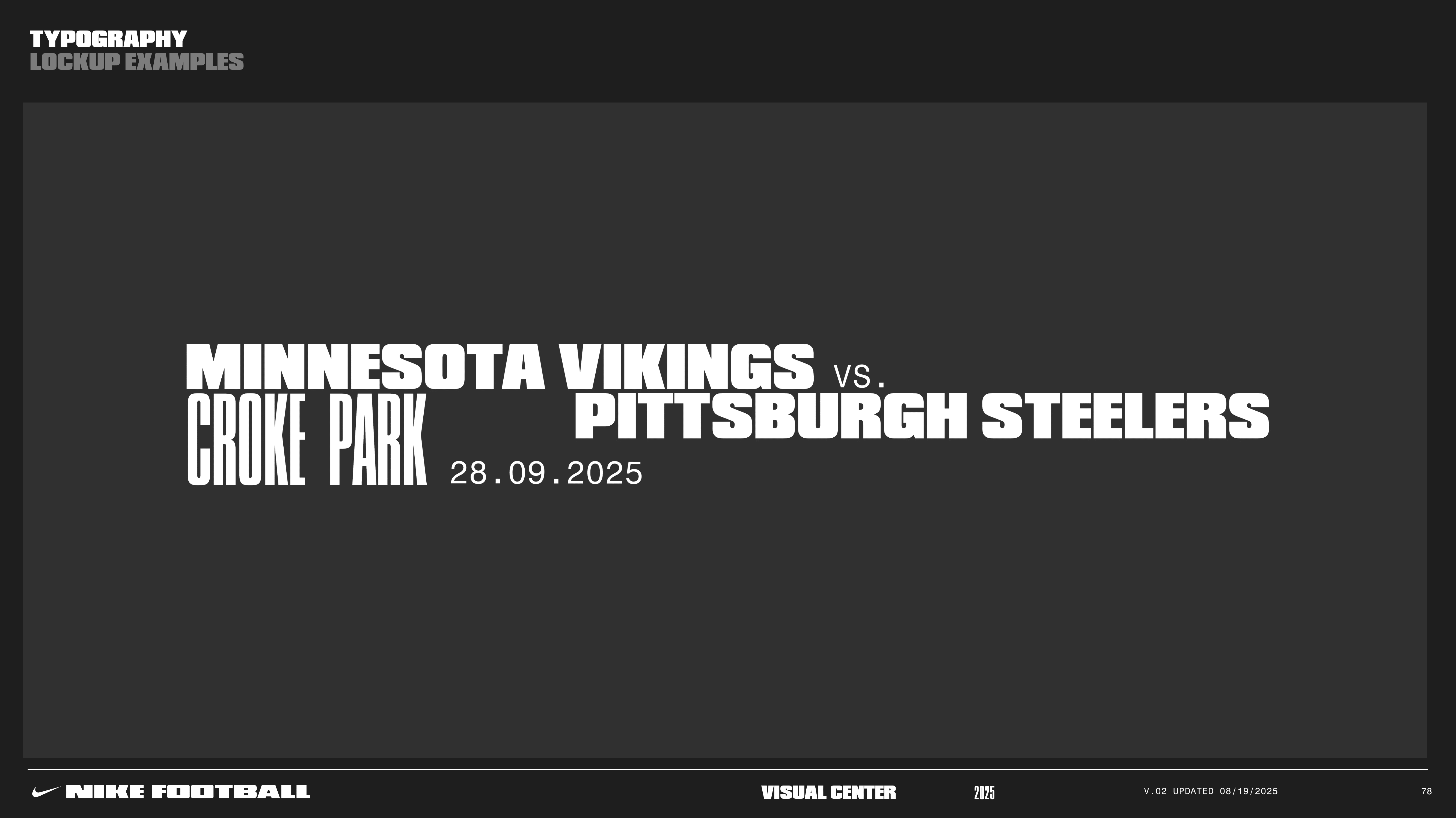 Directed the creative for Nike’s 2025 NFL visual center. Our task was to create a system and define all creative elements for Nike’s partnership with the NFL for the 2025 season. Including but not limited to bespoke logo ideation and execution, palette, typography, textures, graphic elements including iconography, layout system and retail placement executions. Below you’ll find pages pulled directly from our system that define our approach and demonstrate our final result -- a striking logomark with a cohesive, full-scale system appropriate for the longevity of the campaign along with the magnitute of the partnership represented.